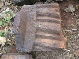 | Description / विवरण | The stone piece having moulding like fluted fivial.The mouldings are rounded and in angled maner atternated each other.towards the interior a raised stone slab is visible near to circular groove. |