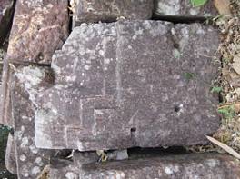 | Description / विवरण | The stone block having decoration only on upper surface .It has shallow step like decorations.The side is slopy and has tanku decoration.Two groove marks are visible used for iron dowels. |