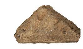 | Description / विवरण | Triangular shaped ceiling slab, which is a part of Kadalikarana motif normally seen in ceiling slabs of garbhagriha antharala. Decorated with leaf like design in the centre. |