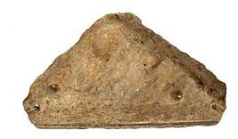 | Description / विवरण | Triangular shaped ceiling slab, which is a part of Kadalikarana motif normally seen in ceiling slabs of garbhagriha antharala. Decorated with leaf like design in the centre. |