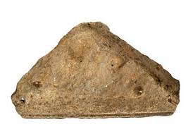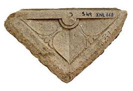 | Description / विवरण | Triangular shaped ceiling slab, which is a part of Kadalikarana motif normally seen in ceiling slabs of garbhagriha antharala. Decorated with leaf like design in the centre. |