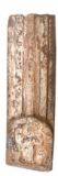 | Description / विवरण | Vertical pillar of door jamb of panchasakha variety with dwarapalaka at the bottom. He stands with hands raised and flanked by chowri bearers on either side. The door jamb is carved with leaf and foliage pattern. |