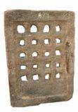| Description / विवरण | Perforated lattice designed window with square holes in five in each row in four rows. |