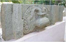 | Description / विवरण | A granite slab depicting a poorna kumbha or the vessel of plenty from which is issued a beautifull makhara creeper falling on either side of the vessel. |