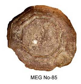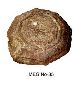 | Description / विवरण | Hexagonal phalaka of a pillar depicted with hexagonal design on dorsal and ventral faces. |