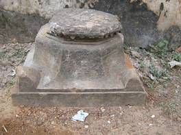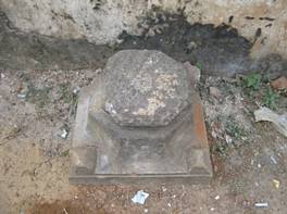 | Description / विवरण | The base of a pillar designed in two steps.Lower is square and upper is octagonal shape in tapering manner .It has three tankus and the four one is broken. |