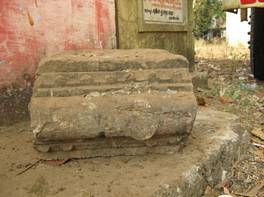 | Description / विवरण | The stone having a projected moulding on one lateral end.On the projected portion double tanku design has been carved.Except this two minor step like projections are visible on the side of the main moulding. These has a tanku designs. |