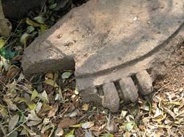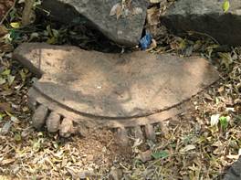 | Description / विवरण | The Amalaka shila is available from one side.It contains a series of denticuted projections.Among these few are broken.A circular depressed line is running parallel to the derticulated projections. |