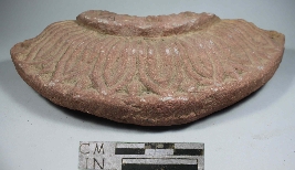 | Description / विवरण | It is damaged part of circular shaped stone middellian which is partially broken. It has prominent hub and carved lotus pettle design. It is of bright red color and smooth surface. |