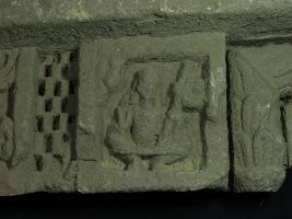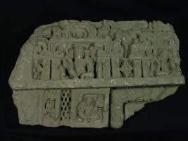 it is a fragment of door lintel part of Temple architectural member. having deity image is Ganesa, Devotee and floral design also.