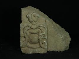 | Description / विवरण | it is a Fragment of temple architectural member made of sand stone,floral design with pot. |