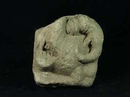 | Description / विवरण | it is a fragment of temple architectural member part of vyala face. having a teeth and projection of eyes. |