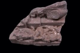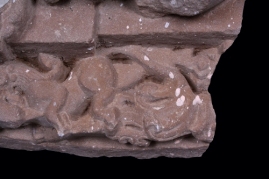 It is a part of a gate pillar with floral carving. It is broken but some decorative parts are visible.