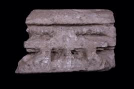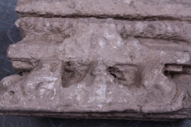 It is a rectangular pillar base with some incise decoration on it. Right and left side is broken and horizontal line on it.
