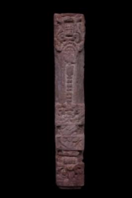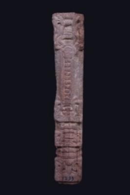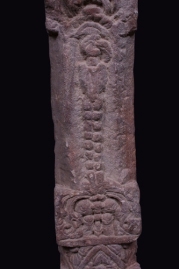 It is a decorated pillar with a human face which is given at centre. Incised geometric motifs can be seen on its surface. Decorations that made by chiseling are clearly visible.