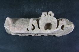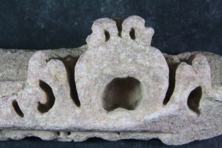 It s a Fragment of Architectural member part of Kapotham made of stone, Colour is brownish. It is well decorated and design is clearly visible. All sides are broken. Deposition of dust and dirt. Rubbing on the surface and flaking on it.