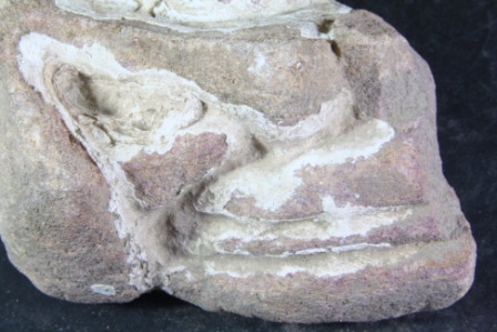 It s a Fragment of Architectural member made of stone, Colour is brownish. It is decorated. All sides are broken. Deposition of dust and dirt. Rubbing on the surface and flaking on it.