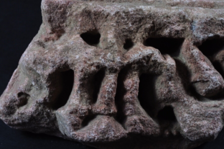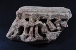 It s a Fragment of Architectural member. It is damaged from all sides and its colour is brownish. It is well decorated and deep design on it. Incise lines design on it. Its bottom portion is flat. Rubbing on the surface and deposition of dust. Surface is rough and flaking on it.