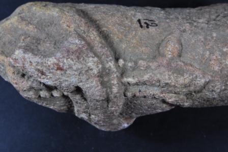 It s a Fragment of Architectural member. It is damaged from all sides and its colour is brownish. It is well decorated and deep design on it. Incise lines design on it. Its bottom portion is lost. Rubbing on the surface and deposition of dust. Surface is rough and flaking on it.