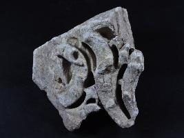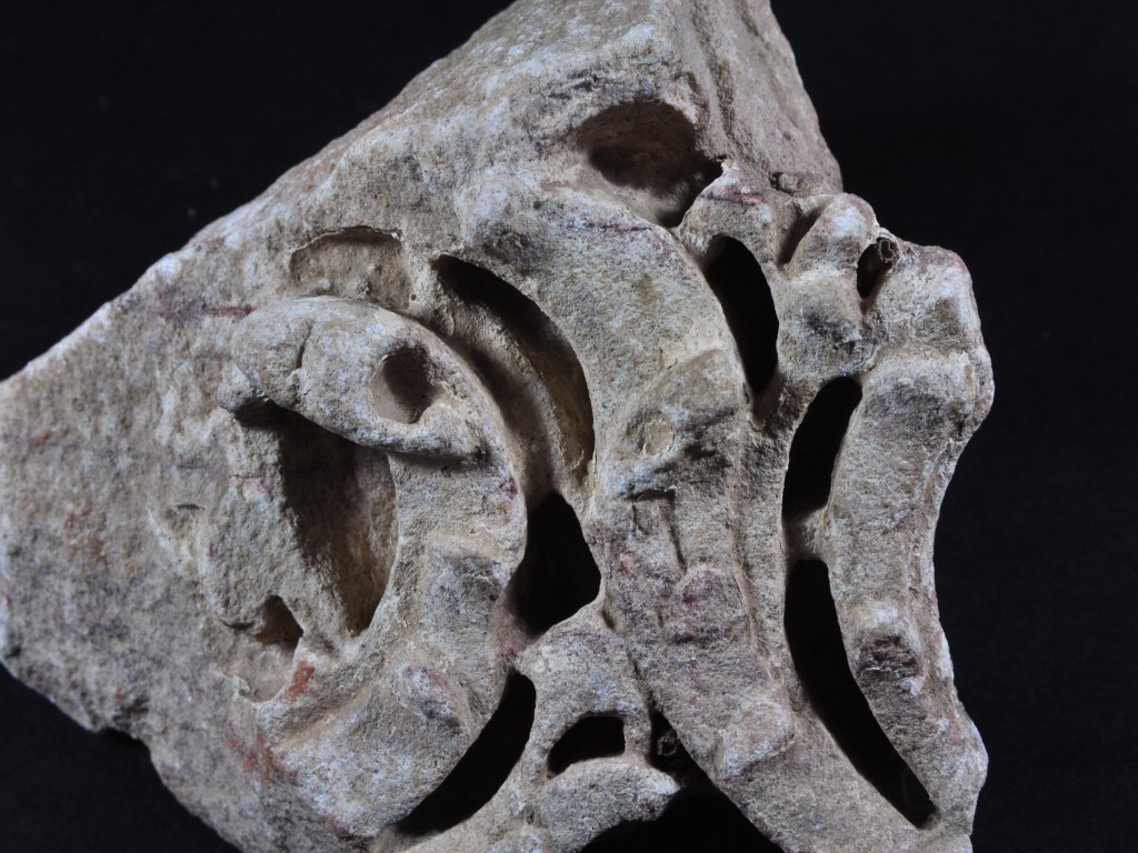 It s a Fragment of Architectural member. It is damaged from all sides and its colour is brownish. It is well decorated and deep design on it. Incise lines design on it. Its bottom portion is lost. Rubbing on the surface and deposition of dust. Surface is rough and flaking on it.
