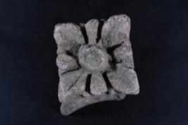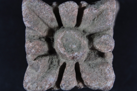 It s a Fragment of Architectural member. It is damaged from all sides and its colour is brownish. It is well decorated and flower design on it. Incise lines design on it. Its bottom portion is flat. Rubbing on the surface and deposition of dust. Surface is rough and flaking on it.