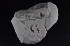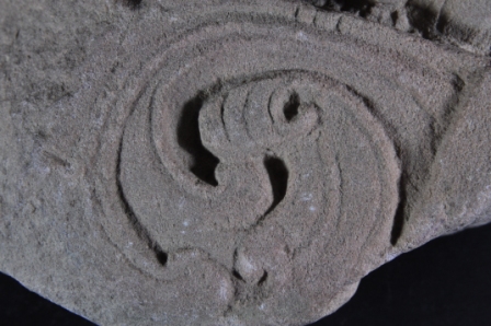 It s a Fragment of Architectural member. It is damaged from all sides and its colour is brownish. It is well decorated and flower design on it. Incise lines design on it. Its bottom portion is flat. Rubbing on the surface and deposition of dust. Surface is rough and flaking on it.