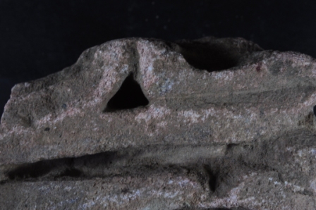 It s a Fragment of Architectural member. It is damaged from all sides and its colour is brownish. It is well decorated and deep design on it. Incise lines design on it. Its bottom portion is flat. Rubbing on the surface and deposition of dust. Surface is rough and flaking on it.