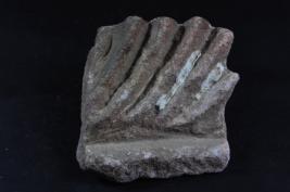 It s a Fragment of Architectural member It is damaged from all sides and its colour is brownish. It is well decorated and deep design on it. Incise lines design on it. Its bottom portion is flat. Many irregular marks on the surface. Rubbing on the surface and deposition of dust. Surface is rough and flaking on it.