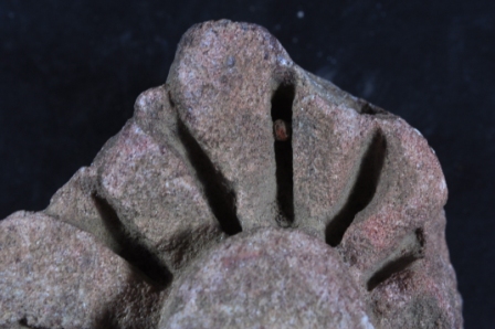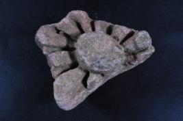 It s a Fragment of Architectural member. It is damaged from all sides and its colour is brownish. It is well decorated and flower design on it. Incise lines design on it. Its bottom portion is flat. Many irregular marks on the surface. Rubbing on the surface and deposition of dust. Surface is rough and flaking on it.