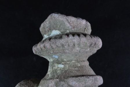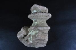 It s a Fragment of Architectural member. It is damaged from all sides and its colour is brownish. It is well decorated and deep design on it. Incise lines design on it. Its bottom portion is flat.Rubbing on the surface and deposition of dust. Surface is rough and flaking on it.