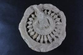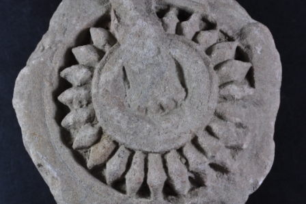 It s a Fragment of Architectural member. It is damaged from all sides and its colour is brownish. It is well decorated and flower design on it. Incise lines design on it. Its bottom portion is flat. Many irregular marks on the surface. Rubbing on the surface and deposition of dust. Surface is rough and flaking on it.
