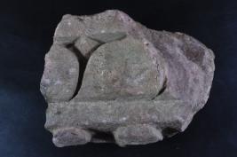 It s a Fragment of Architectural member. It is damaged from all sides and its colour is brownish. It is well decorated and deep design on it. it may be part of Adishttanam Incise lines design on it. Its bottom portion is flat. Rubbing on the surface and deposition of dust. Surface is rough and flaking on it.