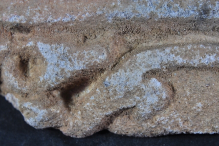 It s a Fragment of Architectural member of stone. It is damaged from all sides and its colour is brownish. It is well decorated and cut design on it. Its upper and bottom position is lost. Rubbing on the surface and many irregular marks on it.