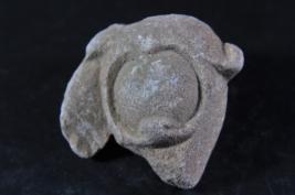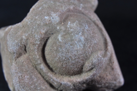 It s a Fragment of Architectural member made of stone. It is damaged from all sides and its colour is brownish. It is well decorated and leaf design on it. Its upper and bottom position is lost. Rubbing on the surface and many irregular marks on it.
