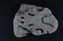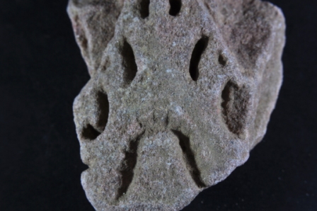 It s a Fragment of Architectural member made of stone. It is damaged from all sides and its colour is brownish. It is well decorated and deep design on it. Its upper and bottom position is lost. Rubbing on the surface and many irregular marks on it.