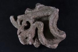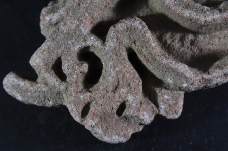 It s a Fragment of Architectural member made of stone. It is damaged from all sides and its colour is brownish. It is well decorated and floral deep design on it. Its upper and bottom position is lost. Rubbing on the surface and many irregular marks on it.