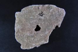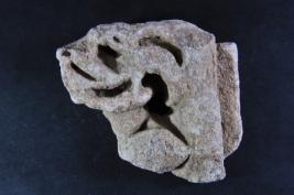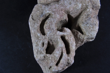 It s a Fragment of Architectural member made of stone. It is damaged from all sides and its colour is brownish. It is well decorated and leaf design on it. Its upper and bottom position is lost. Rubbing on the surface and many irregular marks on it.