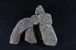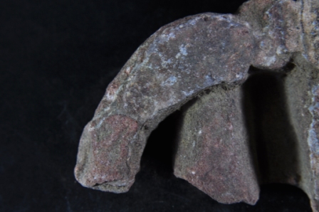 It s a Fragment of Architectural member made of stone. It is damaged from all sides and its colour is brownish. It is well decorated and deep design on it. Its upper and bottom position is lost. Rubbing on the surface and many irregular marks on it.