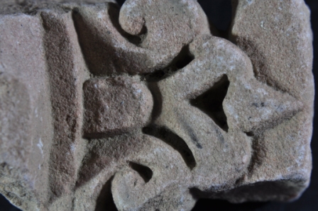 It s a Fragment of Architectural member made of stone. It is damaged from all sides and its colour is brownish. It is well decorated and floral design on it. Its upper and bottom position is lost. Rubbing on the surface and many irregular marks on it.