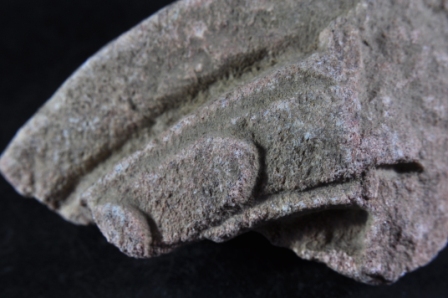 It s a Fragment of Architectural member made of stone. It is damaged from all sides and its colour is brownish. It is well decorated and floral and leaf design on it. Its upper and bottom position is lost. Rubbing on the surface and many irregular marks on it.