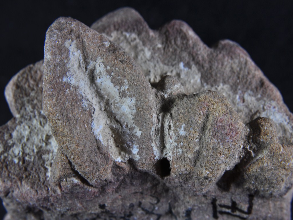 It s a Fragment of Architectural member made of stone. It is damaged from all sides and its colour is brownish. It is well decorated and leaf design on it. Rubbing on the surface and many irregular marks on it.