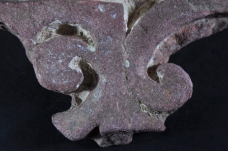It s a Fragment of Architectural member made of stone. It is damaged from all sides and its colour is brownish. It is well decorated and leaf design on it. Rubbing on the surface and many irregular marks on it.
