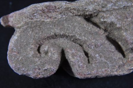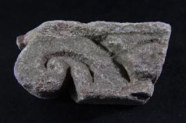 It s a Fragment of Architectural member made of stone. It is damaged from all sides and its colour is brownish. It is well decorated and leaf design on it. Rubbing on the surface and many irregular marks on it.