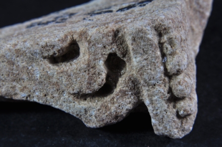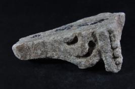 It s a Fragment of Architectural member made of stone. It is damaged from all sides and its colour is brownish. It is well decorated and cut design on it. Rubbing on the surface and many irregular marks on it.