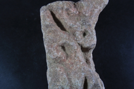 It s a Fragment of Architectural member made of stone. It is damaged from all sides and its colour is brownish. It is well decorated and leaf design on it. Rubbing on the surface and many irregular marks on it.
