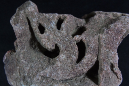 It s a Fragment of Architectural member made of stone. It is damaged from all sides and its colour is brownish. It is well decorated and deep design on it. Rubbing on the surface and many irregular marks on it.