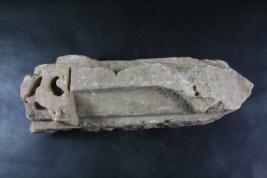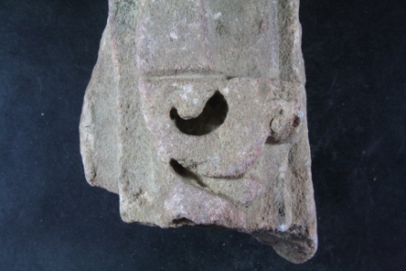 It s a Fragment of Architectural member made of stone. It is damaged from all sides and its colour is brownish. It is well decorated and deep design on it. Its upper and bottom portion Iost. Rubbing on the surface and many irregular marks on it.