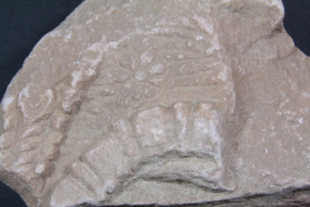 It s a Fragment of Architectural member made of sand stone. All sides are mutilated but decorated design is visible. Fore part is some raised. Scratching overall.