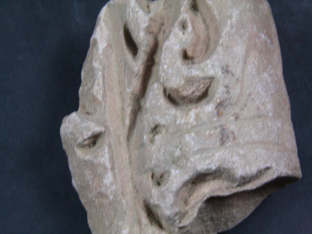It s a Fragment of Architectural member made of sand stone. All sides are mutilated but incised decorated is visible. Fore part is some raised. Scratching overall.