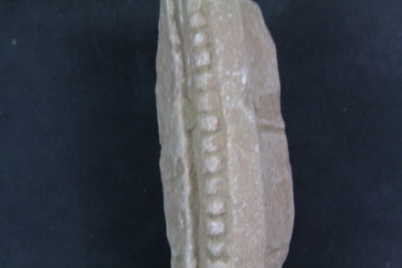 It s a Fragment of Architectural member made of sand stone. All sides are mutilated but decorated design is visible. Fore part is some raised. Scratching overall.